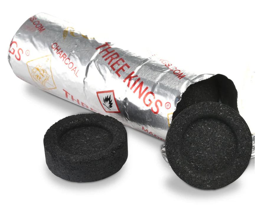 Say goodbye to the wait, and dive right into your relaxation or ritual with our premium Three Kings Quick-Light Charcoal. Available in two convenient sizes with discs measuring either 33 mm or 40 mm in diameter Crafted from 100% European beech wood, our charcoal tabs are not only eco-friendly but ignite quickly, outpacing competitors on the market. They are also odorless, ensuring that your moments of indulgence are defined by pure aroma and flavor. They produce a smooth, consistent, and long-lasting burn and leave behind very little ash. To preserve their quality, store the charcoal tabs in a dry place, ensuring they're ready whenever you are.